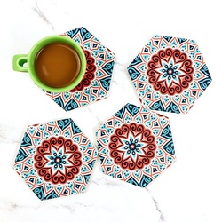 Personalizzato OEM hexagon Mandala stampa piastrelle di ceramica di tè tazza di caffè birra sottobicchieri tazza mats & pads tovagliette per le bevande
